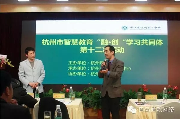 2016年(nián)元月(yuè)14日(rì),由杭州市(shì)教育局主辦的(de)智慧教育“融•創”學習(xí)共同體(tǐ)活動在₽杭州二中舉行(xíng)。 參加本次活動的(de)嘉賓有(yǒu):香港中文(wén)大(dà)學(深圳)副校(xiào)長(cháng)羅智泉教授,杭州市(shì)教育局副局長(cháng)蔣莉,€杭州市(shì)教育工(gōng)委委員(yuán)、市(shì)教育資産營運管理(lǐ)中心主任張志(zhì)龍,杭州市(shì)及各縣區(qū)教育局分(fēn)管領導,以及杭州直屬學校•(xiào)分(fēn)管領導和(hé)教育信息化(huà)項目負責人(rén)等。 杭州二中副校(xiào)長(cháng)楊帆在會(huì)上(shàng)作(zuò)了(le)工(gōng)作(zuò)報(bào)告——杭州二中“攬慧”工(gōng)程實踐與思考。“攬九天之月(yuè),慧天下(xià)英才。” 作(zuò)為(wèi)杭州二中智慧校(xiào)園信息化(huà)建設的(de)重要(yào)參與者,青島通(t$ōng)軟網絡公投入骨幹力量耗時(shí)兩年(nián)時(shí)間(jiān)跟蹤浙江新課改、新高(gāo)考,研發≠推出“通(tōng)軟‘新課改、新高(gāo)考’智慧校(xiào)園一(yī)體(tǐ)化(huà)平台” 并在在杭州二中等學校(xiào)成功實施。會(huì)上(shàng),通(tōng)軟公司總經理(lǐ)楊雲鵬針對€(duì)新形勢下(xià)智慧校(xiào)園一(yī)體(tǐ)化(huà)系統建設提出:新課改的(de)核心理(lǐ)念是(sh™ì)一(yī)切為(wèi)了(le)每一(yī)個(gè)學生(shēng)的(de)發展。教育理(lǐ)念的(de)轉變帶來(lái)教學♦/管理(lǐ)模式和(hé)手段的(de)轉變。新形勢下(xià),必須堅持學校(xiào)理(lǐ)念©先行(xíng)的(de)信息化(huà)建設核心,注重整體(tǐ)規劃的(de)重要(yào)性,實®現(xiàn)信息化(huà)建設的(de)可(kě)持續發展。