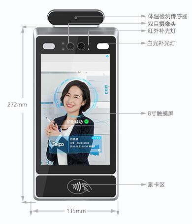 l 安卓7.1操作(zuò)系統,采用(yòng)強大(dà)的(de)RK3399CPU方案; l 人(rén)臉識别:采用(yòng)高(gāo)級的(de)人(rén)臉識别算(suàn)法技(jì)術(shù)檢測人(rén)™臉; l 溫度檢測:采用(yòng)紅(hóng)外(wài)熱(rè)成像技(jì)術(shù)進行(xíng)溫度檢測;0.5米內(nèi)完成體(tǐ)溫檢測,測溫精度高(gāo)達±0.5℃ l 高(gāo)溫報(bào)警:溫度高(gāo)于37.3°設備自(zì)動報(bào)警,利于疫情對(duì)重點關注人(rén)員(yuán)管控; l 口罩識别:不(bù)帶口罩有(yǒu)語音(yīn)提示; l 內(nèi)置二維碼讀(dú)頭,可(kě)對(duì)接全國(guó)各地(dì)健康嗎(ma)平台; l 身(shēn)份證識别:可(kě)選內(nèi)置二代證模塊,實現(xiàn)對(duì)人(rén)員(yuán)身(shēn)份鑒别及體(t"ǐ)溫檢測; l 支持4G功能(néng):可(kě)選4G模塊,沒有(yǒu)網線接入的(de)臨時(shí)搭建場(chǎng)景和(hé)偏遠(yuǎn)場(chǎng)景實現(≤xiàn)數(shù)據傳輸; l 支持強光(guāng):可(kě)在戶外(wài)強光(guāng)、背光(guāng)、逆光(gu≈āng)等惡劣環境使用(yòng); l 人(rén)臉識别測溫終端支持語音(yīn)/視(shì)頻(pín)呼叫:訪問(wèn)者可(kě)以通(tōng)過對(duì)講系統的(de)呼叫訪問(wèn) l 支持多(duō)模塊擴展(二維卡、刷卡等) l 支持雲端和(hé)本機(jī)端識别,個(gè)性化(huà)定制(zhì) l 支持存儲大(dà)于30000張人(rén)臉 l 多(duō)種安裝方式:支持壁挂、閘機(jī)支架、桌面支架、立柱支架安裝 |