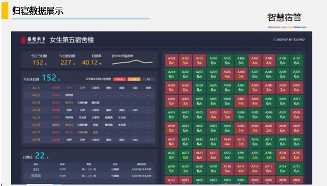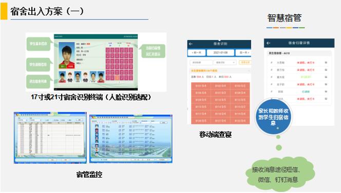 智慧宿管解決方案:融合宿舍調配、人(rén)臉通(tōng)道(dào)、歸寝簽到(dào)、歸寝數(shù)據展示、宿舍評價、公示提醒、家(jiā)≥校(xiào)推送于一(yī)體(tǐ)的(de)針對(duì)宿舍公寓場(chǎng)景的(de)安全、管理(lǐ)、服務解決方案。