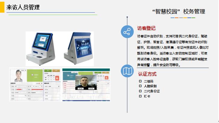 智慧出入解決方案:融合出入規則、人(rén)臉通(tōng)道(dào)、身(shēn)份識别、公示提醒、出入數(shù)據展示、家(jiā)校(xiào)推送、請(qǐng)假管理(lǐ)、ε來(lái)訪登記、訪客預約于一(yī)體(tǐ)的(de)針對(duì)校(xiào)門(mén)出入應用(yòng)場(chǎng)景的(de)安全、管理(lǐ)解決方✔案。