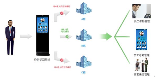 智慧出入主要(yào)覆蓋機(jī)關大(dà)樓特殊出入位置,通(tōng)常各出入口根據現(xiàn)場(chǎng)情況可(kě)分(fēn)為(←wèi)有(yǒu)人(rén)值守與無人(rén)值守兩種方式。各出入口配合智能(néng)化(huà)設備實現(xiàn)對α(duì)出入場(chǎng)所的(de)各類人(rén)員(yuán)身(shēn)份信息的(de)核驗。 l 有(yǒu)人(rén)值守模式 現(xiàn)場(chǎng)部署“通(tōng)軟身(shēn)份識别一(yī)體(tǐ)機(jī)”實現(xiàn)對(duì)進出人(rén)員(yuán)身(shēn)份信息核驗。通(tōng)過AI認證中心對(duì)進出入人(rén)員(yuán)進行(xíng)身(shēn)份認證,一(yī)體(tǐ)機(jī)僅對(duì)人(rén∑)員(yuán)做(zuò)出識别,是(shì)否允許通(tōng)行(xíng)由保安根據身(shēn)份認證結果做(zu♣ò)出判斷;支持人(rén)臉識别及卡片兩種認證方式,其中訪客僅支持人(rén)臉識别。身(shēn)份認證通(tōng)過的(de)人(rén)員(yuán)系統會(huì)将識别記₽錄上(shàng)傳至服務端保存。