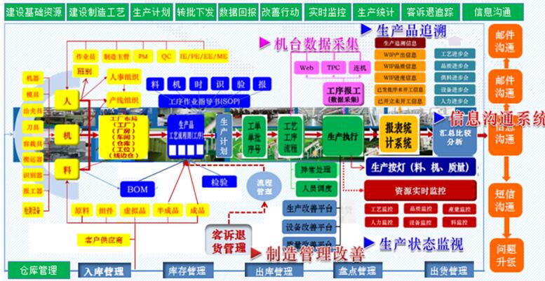 MES制(zhì)造執行(xíng)系統是(shì)一(yī)套面向制(zhì)造企業(yè)車(chē)間(jiān)執行(xíng)層的(de)生(shēng)産信息化(huà←)管理(lǐ)系統。是(shì)維系上(shàng)層計(jì)劃管理(lǐ)系統與底層工(gōng)業(δyè)控制(zhì)系統之間(jiān)的(de)紐帶,它為(wèi)管理(lǐ)人(rén)員(yuán)提供計(jì)劃的(de)執行(xíng)、跟蹤以及所有₩(yǒu)資源(人(rén)、設備、物(wù)料、客戶需求等)的(de)當前狀态。目的(de)是(shì)實現(xiàn)生(shēng)産過程的(de)可(kě)視(shì)化(huà)、可(kě)控化(huà↔)。 MES系統是(shì)數(shù)字化(huà)車(chē)間(jiān)的(de)核心。通(tōng)過數÷(shù)字化(huà)生(shēng)産過程控制(zhì)整體(tǐ),借助自(zì)動化(huà)和σ(hé)智能(néng)化(huà)技(jì)術(shù)手段,實現(xiàn)車(chē)間(jiān)制☆(zhì)造控制(zhì)智能(néng)化(huà)、生(shēng)産過程透明(míng)化(huà)、制(zhì)造裝備數(shù)€控化(huà)和(hé)生(shēng)産信息集成化(huà)。 整體(tǐ)框架: